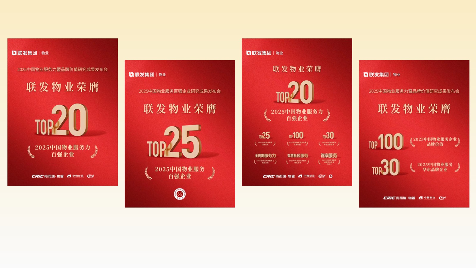 近期,在2025中國物業(yè)服務(wù)力暨品牌價(jià)值研究成果發(fā)布會(huì)上,聯(lián)發(fā)物業(yè)獲“中國物業(yè)服務(wù)力百強(qiáng)企業(yè)TOP20”“中國全周期服務(wù)力領(lǐng)先企業(yè)”;此外,在2025中國物業(yè)服務(wù)百強(qiáng)企業(yè)研究成果發(fā)布會(huì)上,聯(lián)發(fā)物業(yè)連續(xù)16年榮膺“中國物業(yè)服務(wù)百強(qiáng)企業(yè)”,位列第25位。
