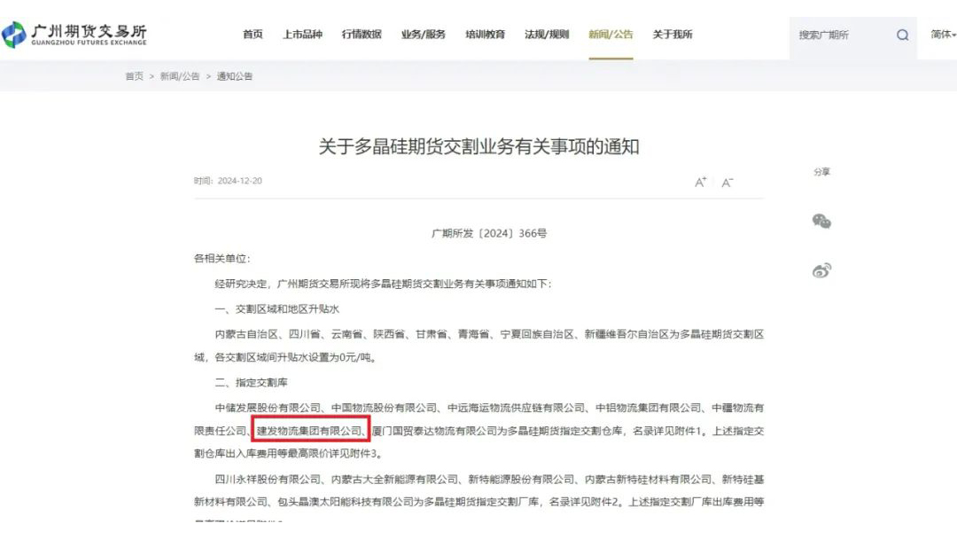 建發(fā)物流獲批多晶硅期貨交割倉資質(zhì)